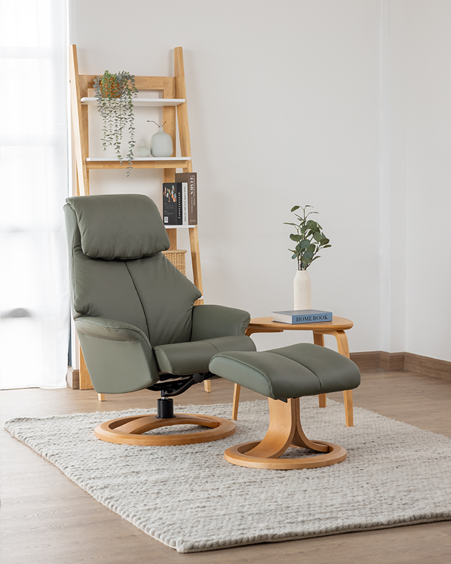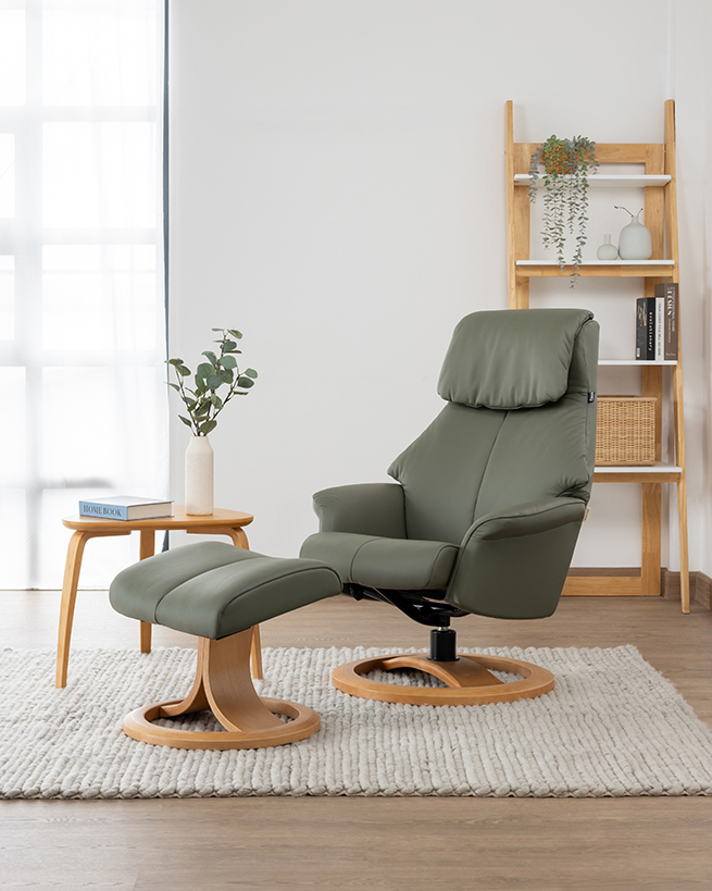 Scandi 150 리클라이너는 현대적인 노르웨이 디자인과 탁월한 편안함을 제공합니다. 작고 가벼운 실루엣으로 작은 공간에도 적합하며, 헤드레스트 조정, Comfort Glide™ 시스템을 통한 부드러운 리클라이닝, 360° 스위블 기능 등이 특징입니다. 발 받침대는 인체공학적으로 설계되어 혈액 순환을 돕고, 다양한 가죽 컬러와 목재 마감 처리로 맞춤형 스타일을 연출할 수 있습니다.